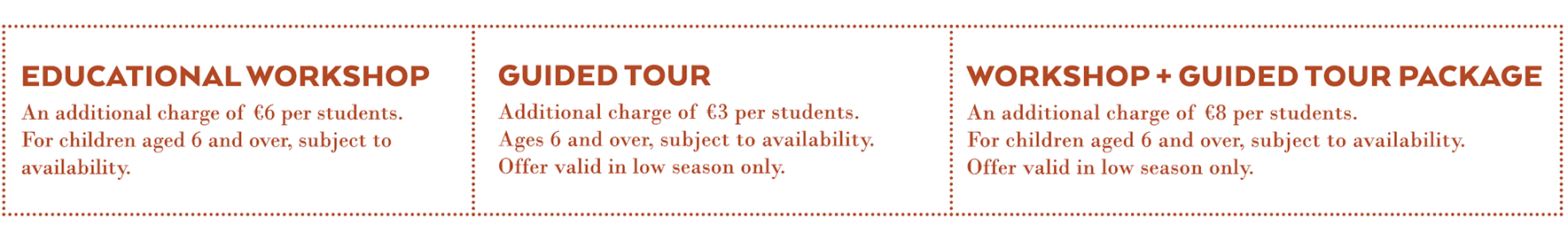 | Student aged 4 to 12 | €11.20 | €16.20 |